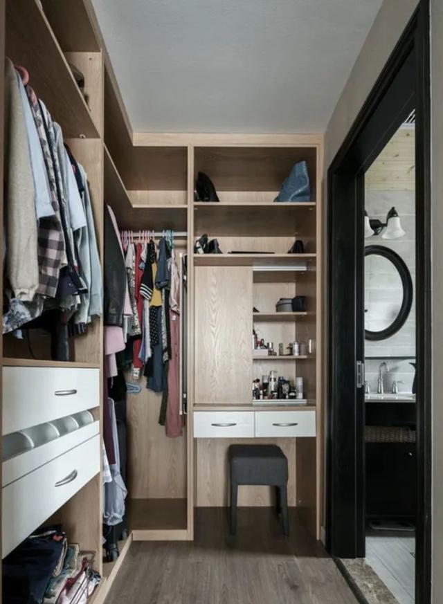 大于3㎡就可尝试做衣帽间:包含柜体,整体宽度不小于120cm,按照正常2.5米长度计算,一个最小的衣帽间至少要有3㎡空间。如果储物深度和走道空间不够,建议先保证过道宽度,适当牺牲储物深度,不然太窄的衣帽间转身都困难,体验就很差。而面积小于3㎡直接做大衣柜会更加实用。