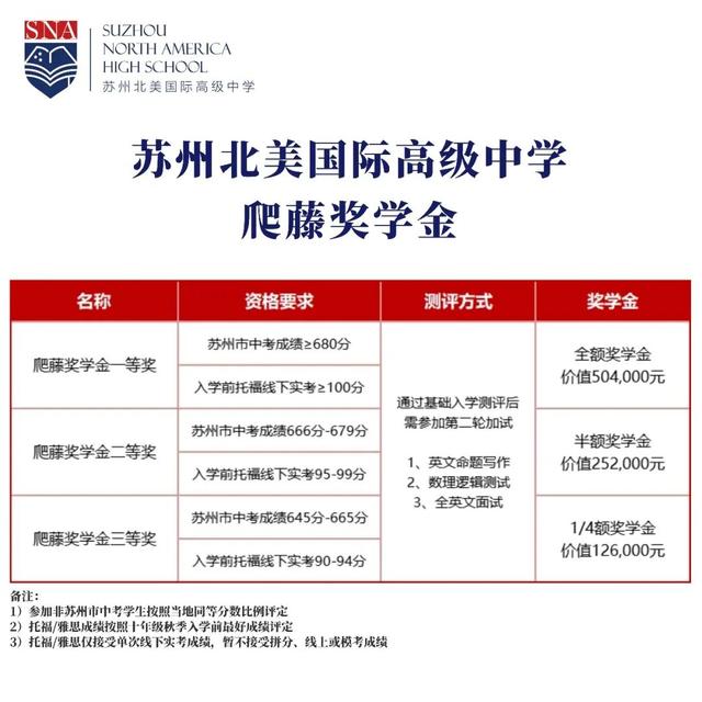 苏州北美将为学术上有杰出潜能以及符合学校愿景和价值观的优秀学生提供奖学金。我们希望借助奖学金项目可以激励学生们在苏州北美不断发现自我,成长为品学兼优的学生。