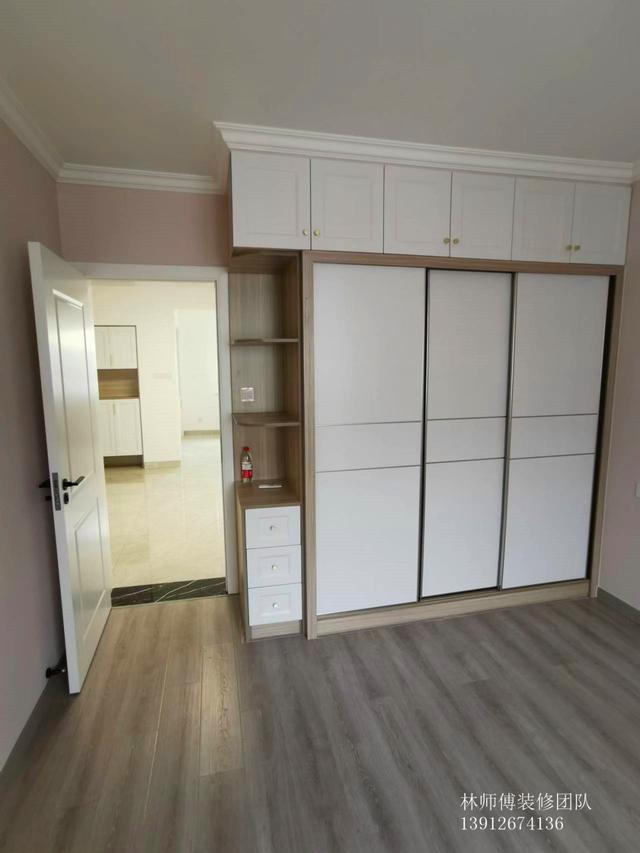 两个卧室,白色的衣柜和粉色的墙面,看着就非常恬静,后期再选上舒适的床品,一定会更有利于休息的。