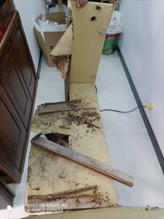 以下是某位业主家里的生态板,全部发霉、烂掉……简直了!看着就很恶心了,实在不敢想象,之前住在里面是种怎样的体验。