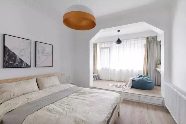 2、阳台纳入卧室,设计时尽量保持两个空间风格与色彩的统一,视觉上完整和谐,才能让卧室看起来更显开阔美观。