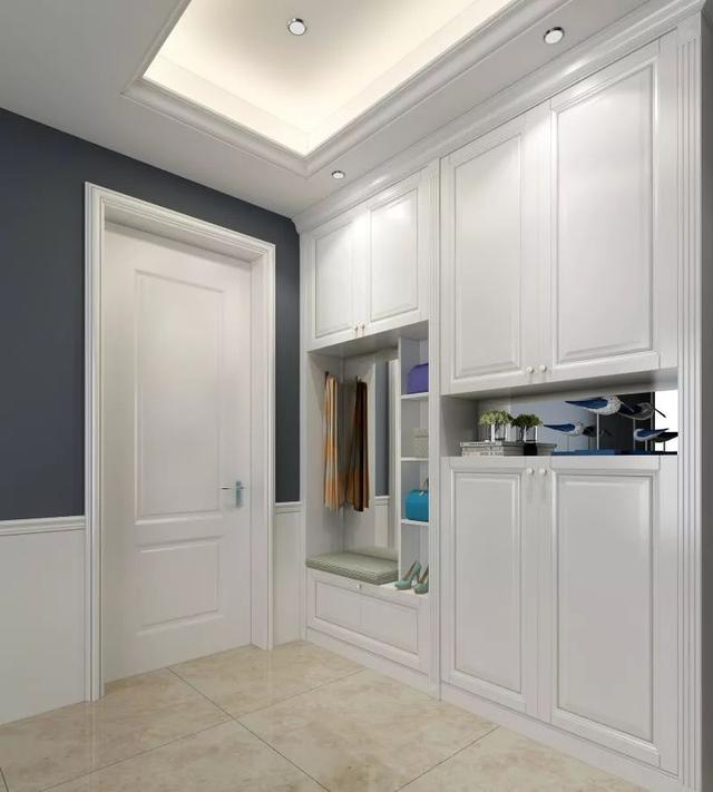 但入户柜的穿衣镜不宜太大,能刚好照到全身便可,同时也不要正对大门,最好放置于进门的侧面或大门平行的位置。
