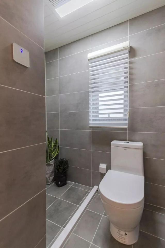 ▲ 客卫整体铺贴灰色格子地砖与墙砖,白色百叶窗装点空间,保持浴室私密性的同时,并不阻断窗外自然光,营造出独一无二的天然美感。