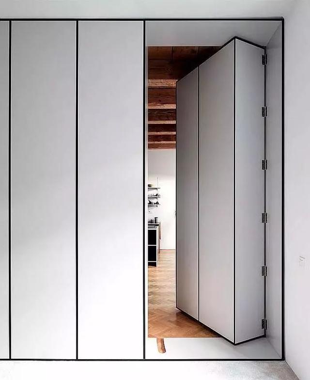 在室内空间中,隐形门是一种十分时尚的设计表达形式。它不设把手,不用门框,没有锁孔,常常会让人产生“那不是门”的幻觉。