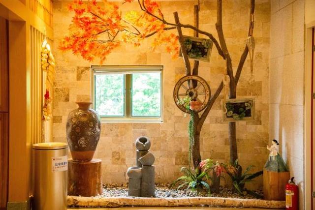 坐在里面正好在绿植、小山下