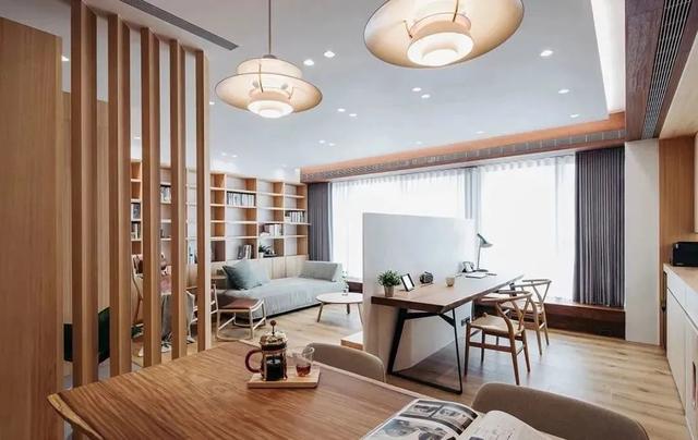 餐厅可以定制一个餐边柜,预留一部分空间充当书柜。在小户型中,餐边柜与书柜合二为一,非常省空间。