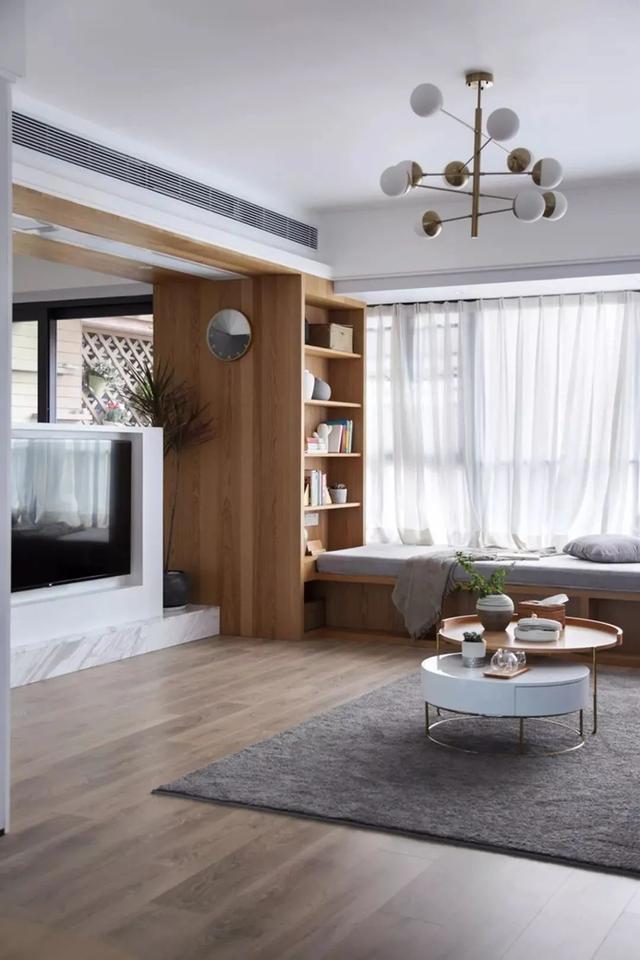 飘窗书柜:飘窗设计书柜,不仅不会影响美观,而且实用性很强。