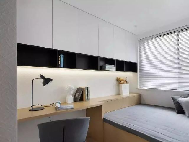 床头书桌柜:针对床头摆放书桌的情况,直接采取书桌柜一体式的设计就好了。
