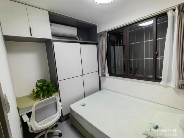 次卧,兼顾睡房和书房两大功能。把空调“包”在柜子里,让空间最大程度的利用起来,也更加美观。