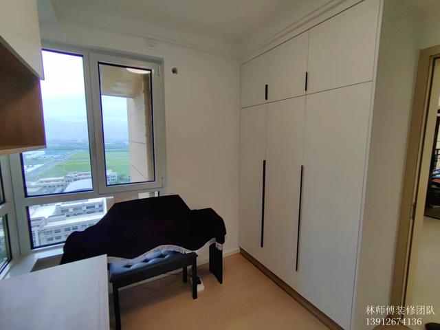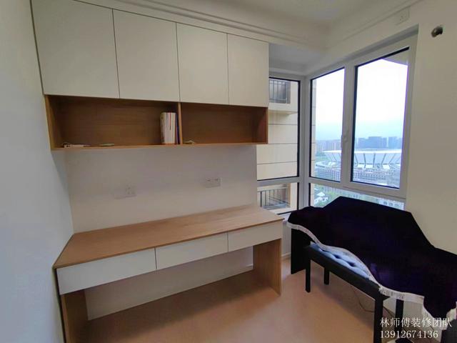 书房打造成一个多功能房,既设计了书房,可以学习办公,又是孩子的琴房,可以用来练琴,同时又有一排衣柜,可以用来收纳。功能多多,让其利用最大化。