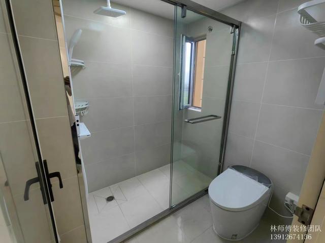 洗手间实现了三分离,洗手池外移,让使用更便捷。里面也是干湿分离,淋浴间玻璃移门阻断,洗澡水不会外溅,保持洗手间清爽。