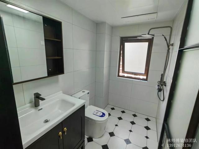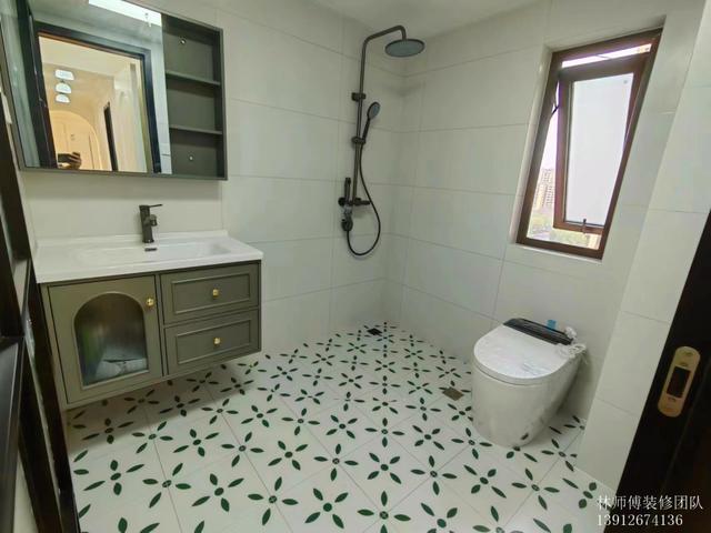 家里两个卫生间也都是非常美式风的。一个复古绿,另一个则为经典黑白色,不管是哪一个都是颜值超高。而且两个洗手间都没有做淋浴房,为以后擦玻璃省去了很多功夫呢~