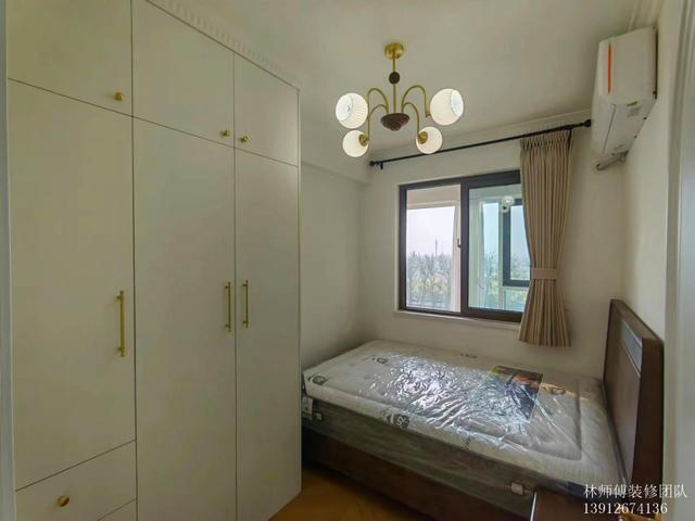 次卧的空间不是很大,仅能放下一张床和衣柜。在设计上也是以实用舒适为主,让家里的长辈住得舒心。