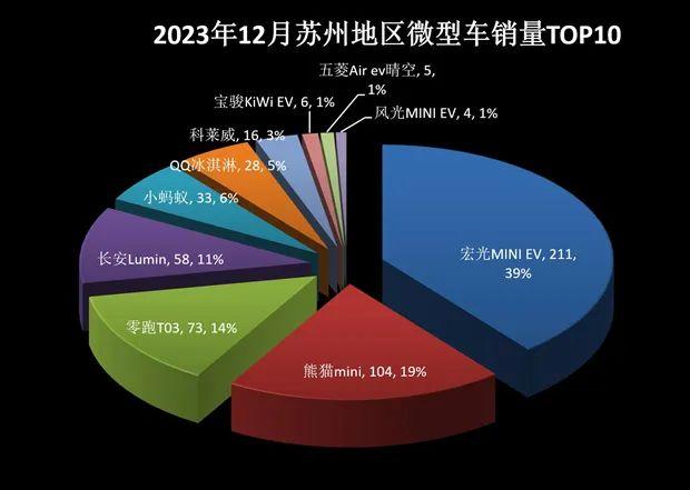 2023年12月,宏光MINI EV、熊猫mini、零跑T03、长安Lumin、小蚂蚁、QQ冰淇淋、科莱威、宝骏KiWi EV、五菱Air ev晴空、风光MINI EV,销量分别为211辆、104辆、73辆、58辆、33辆、28辆、16辆、6辆、5辆、4辆,位居A00级微型车销量前十。