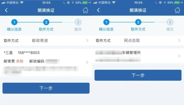 有两种方式,自取和邮寄。如选择自取,则选离自己最近的交管所去取即可。如选择邮寄,需填写收件地址,工本费选择线上支付也行,和快递费一起到付也可以。