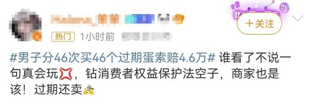 第二天(2月21日),原告又在被告处购买了相同批次的40枚咸鸭蛋,同时通过银行卡刷卡支付40次,由被告同时分别开具40枚咸鸭蛋购物小票40张。该批咸鸭蛋已过保质期2天。原告以46枚咸鸭蛋均已过保质期为由向当地市场监督管理局举报,经调解未成,诉至法院,请求被告退还原告购物款101.20元,并由原告退还被告46枚咸鸭蛋;由被告按照每枚最低赔偿1000元计算共计赔偿46000元。