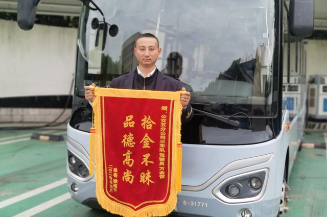 4月2日,公交W507路驾驶员万金雷在湖滨花园站发现了一只挎包,包内有手机、钱包、存折等贵重物品,报备车队后通过包内手机联系失主家属告知失物遗失地点和领取方式。14日,该乘客将一面“拾金不昧 品德高尚”的锦旗送到了万师傅所在的车队,赞扬万师傅拾金不昧的行为。