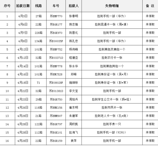 【昆山公交正能量】4月职工中涌现好人好事166起,归还失物118件