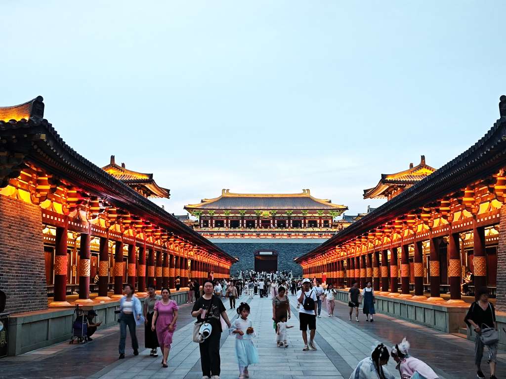 走马观花逛了一下万达广场,出来已经是下午五点多,我赶紧打车去了当地评价较高的盛世唐城景区,花了120多元买了张夜场票进入了景区。盛世唐城景区里面建设有仿古建筑和水系,景区里的城墙城楼高大威严,主通道两边的街市市井气实足,小路两边绿树成荫,古色古香,有很多着古装的美女在拍照,喜欢看的有福了。唐城景区主通道两边的东市和西市有很多小吃可以品偿,饭点时间,我吃了几家当晚饭。景区入口处的明德门广场晚上有表演,声势浩大,骑马射箭,古装舞蹈等,夜间还有灯光秀,音乐喷泉等等,声色俱佳,整个景区还是值得一逛的。