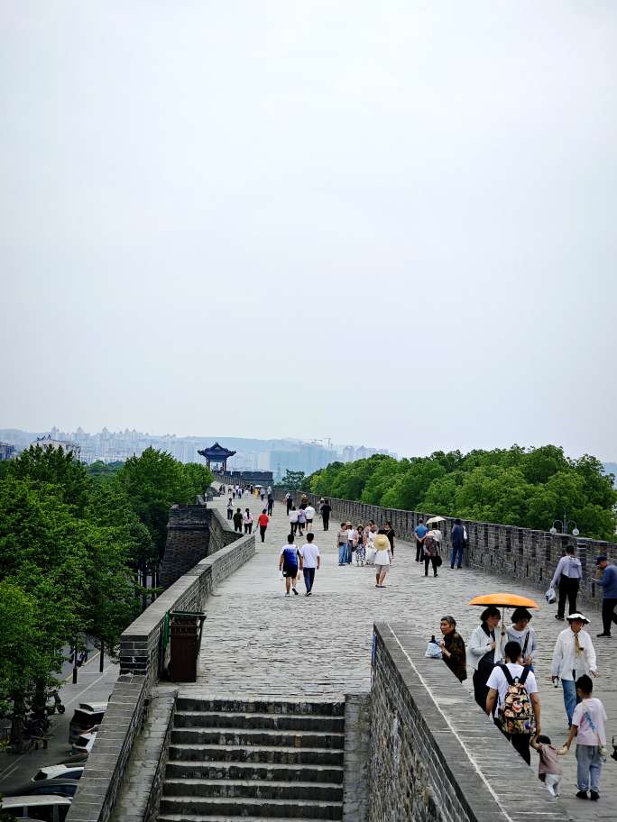 我是下午1点多从高铁站出来的,直接打车去了此行的首要目的地襄阳古城,花费三十多元车费,在古城中心的鼓楼下车。下车后,沿主要步行街北街一路向北,一路闲逛到襄阳古城的北门。襄阳古城其实不大,从城中心的鼓楼沿北街走到城墙北门也就一公里左右。沿途我吃了当地特产南漳猪油饼、红糖饼和一小碗襄阳牛肉面,猪油饼10元7个,红糖饼4元一个,牛肉面小碗15元一碗,味道都很好。猪油饼尤其好吃,个头不大,炉子里刚烤出来,馅料实足,咬一口,肉香四溢;襄阳的牛肉面也很有特色,15元一碗的面里面真材实料,面里有不少牛肉牛杂和绿豆芽等配料,红色的汤料,一辣二麻三鲜,别具风味。