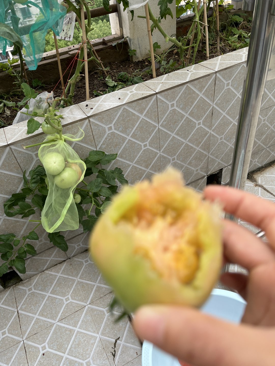湫兮如风:西红柿和养月季一样要日照 的,否则徒长个头啊。长到一定程度要掐头,打侧枝的。 (2024-06-26 10:24)