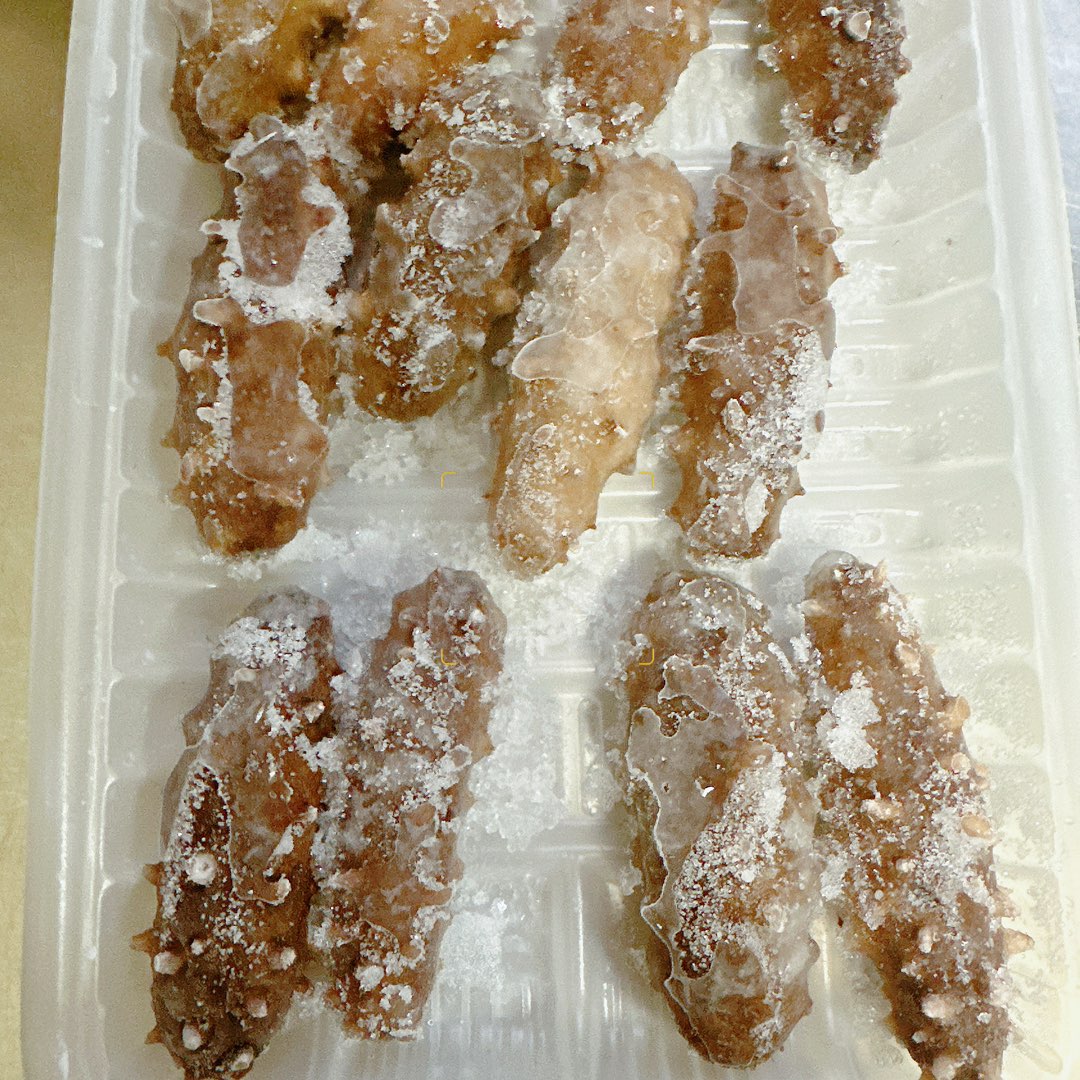 朋友给的这样的海参,每年都她回老家回来都会给我些海鲜,我家海鲜吃的不多,那天早餐蒸海参,姐姐说她知道好东西,是硬着头皮吃的。