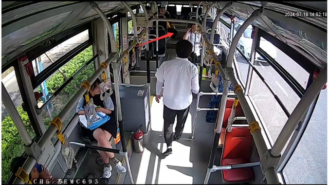 7月18日,公交168路驾驶员顾宇新驾驶车辆至祖冲之路城北路交叉路口时,后排乘客向他紧急呼救。