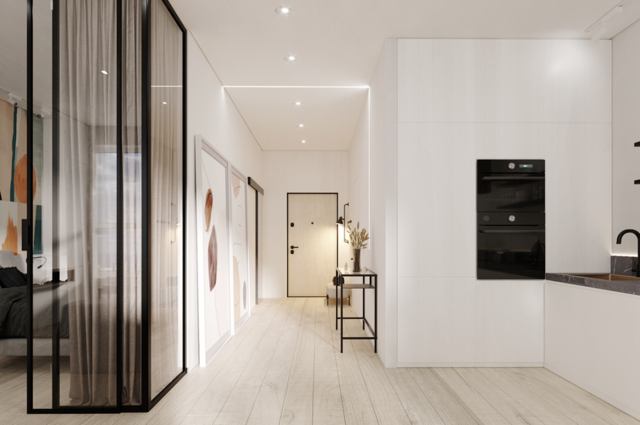 1、在入户门外向户型内望去时,玄关处应当有所遮挡,避免门外就能对屋内一览无余;