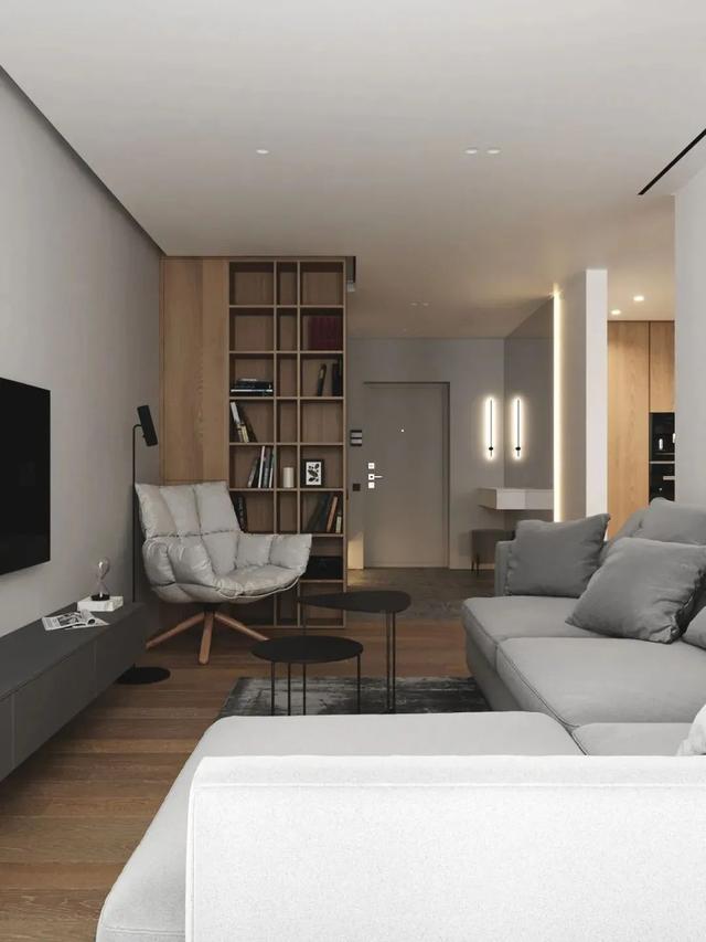 4、玄关和客厅的隔断可用鞋柜、隔断柜、置物台,还可用植物隔断、鱼缸隔断增添生机;