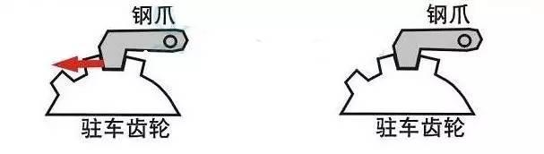 也就是下图中的钢爪刚好勾上了驻车齿轮!