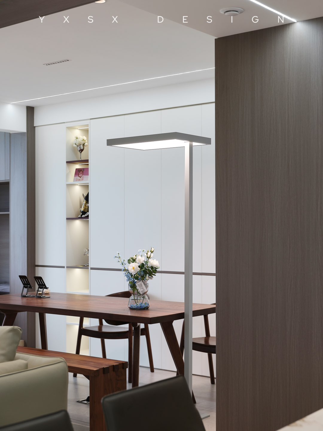 沙发不靠墙,后面做了开放式书房,办公+学习两不误,还有一点很重要,这个空间可以让人彻底放松下来,静下心来感受幸福。