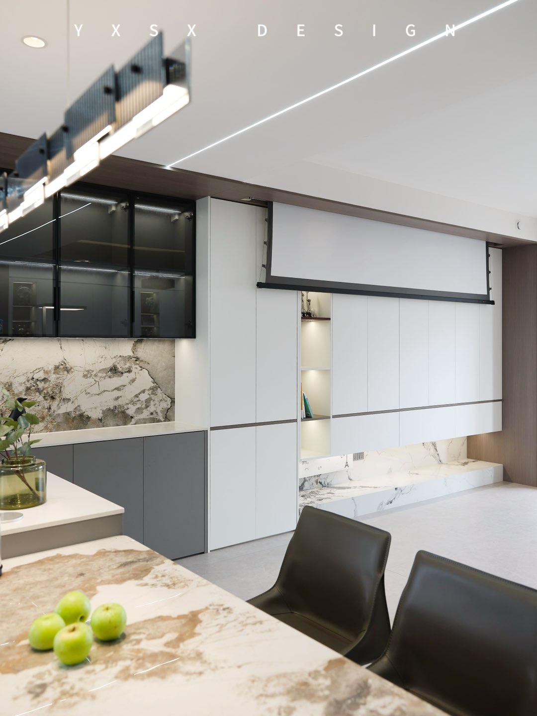 经典黑白灰,结合木饰面、岩板等极简风设计,让整个家充满高级质感。