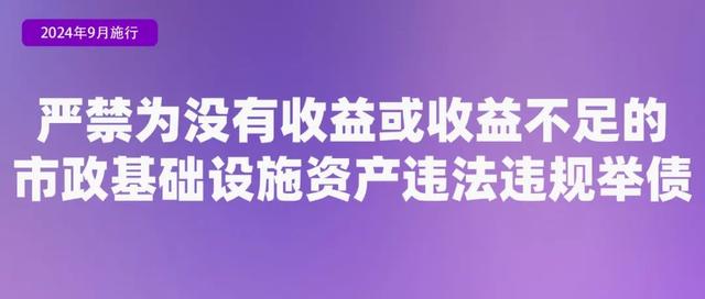 财政部等六部门联合发布《市政基础设施资产管理办法(试行)》,自2024年9月1日起施行。《办法》提出,政府投资建设的市政基础设施资产应当依法严格履行基本建设审批程序,落实资金来源,加强预算约束,防范政府债务风险。严禁为没有收益或收益不足的市政基础设施资产违法违规举债,不得增加隐性债务。