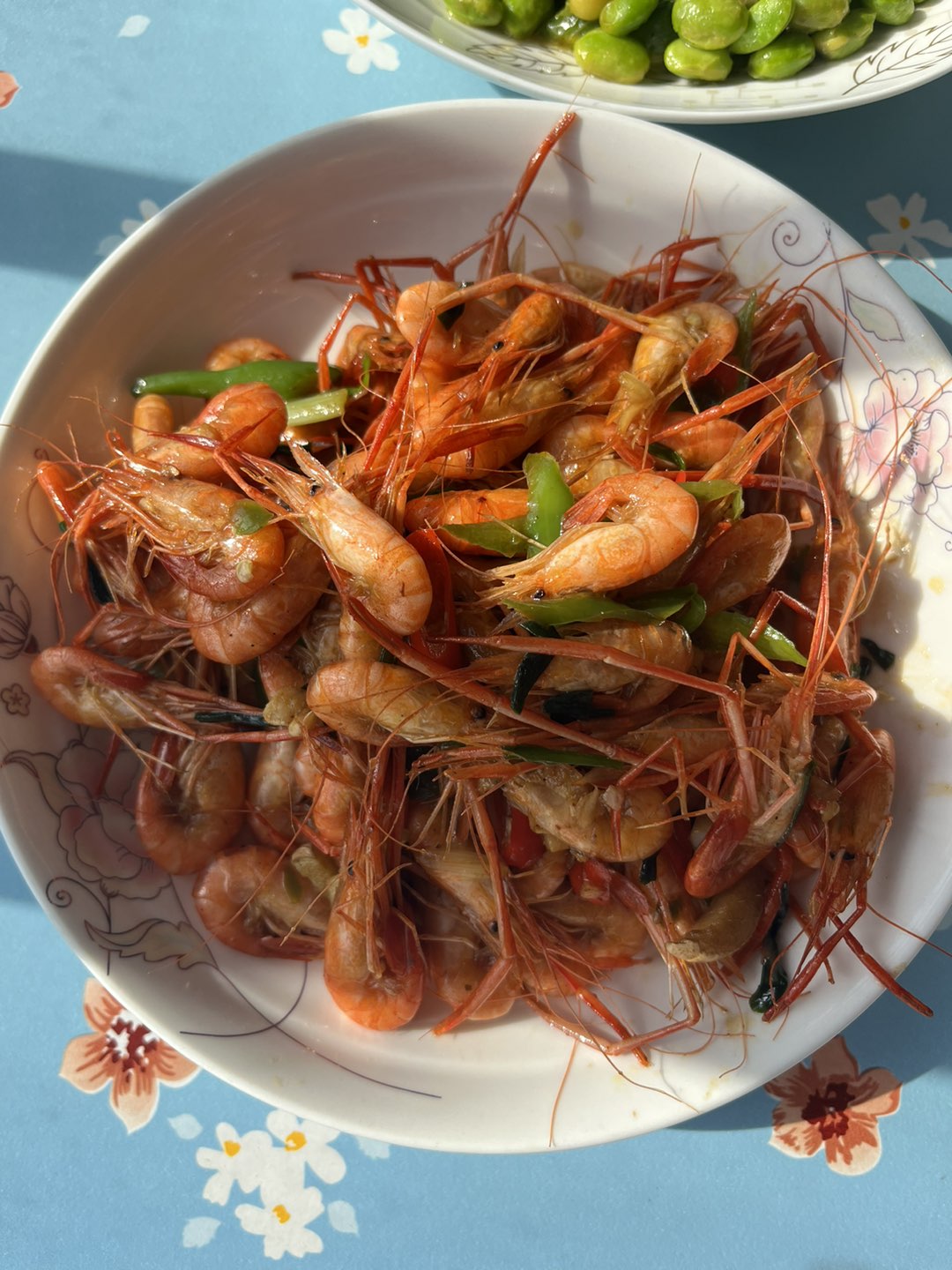周末娃在家,娘两就可劲的造吧,把想吃的通通安排起来,早早去菜场,买了河虾,河虾70一斤,真心感觉有点小贵,娃说想吃炒毛豆,但是今天娃爸不在家,我是真心不想剥毛豆,一问剥好的毛豆15一斤,带壳的毛豆6元一斤,那我也不想剥,手指甲真心吃不消,还是买剥好的毛豆吧,谁让娃想吃呢,是不是有点败家的感觉