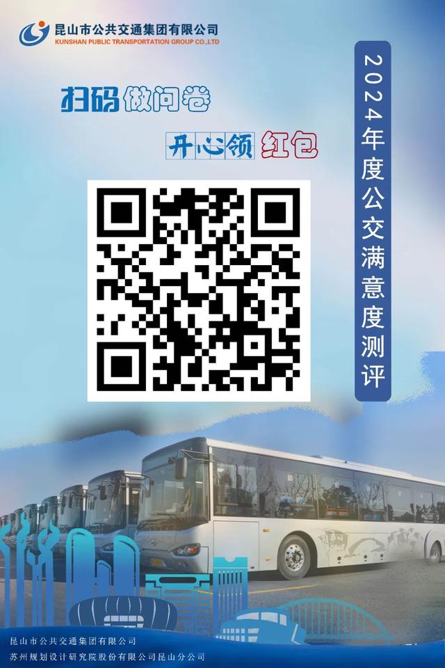 为科学、客观地评估市民对我市公交在可靠性、服务质量、舒适度及经济性等方面的满意度,收集市民对我市公交服务的评价和建议,以及对轨道沿线微巴出行需求和总体满意度的反馈,持续提升我市公交综合服务水平,特开展2024年昆山市公交满意度测评问卷调查。欢迎广大市民踊跃参与,对我市公交服务给予中肯、客观的评价,并留下您宝贵的意见和建议!