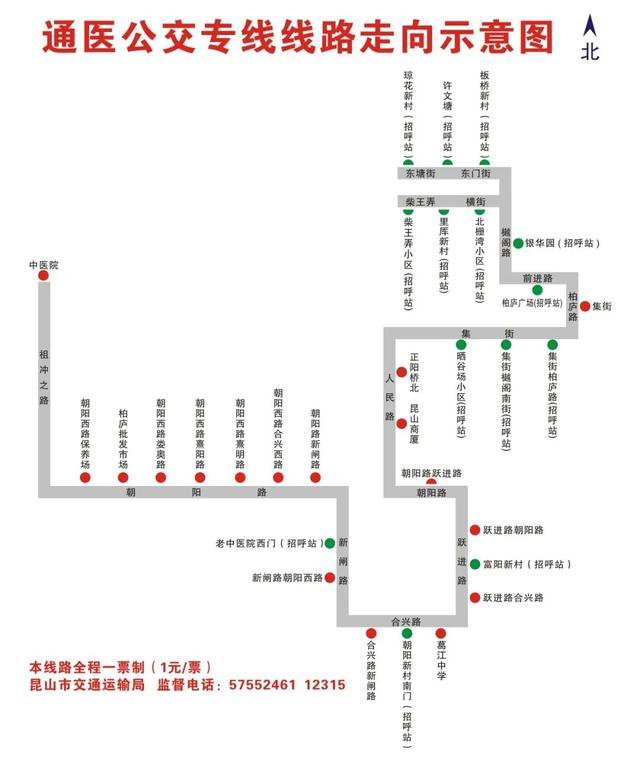 停靠站点:柴王弄小区、里厍新村、北栅湾小区、银华园、柏庐广场、集街、集街柏庐路、集街樾阁南街、晒谷场小区、正阳桥北、昆山商厦、跃进路朝阳路、富阳新村、跃进路合兴路、葛江中学、朝阳新村南门、合兴路新闸路、新闸路朝阳西路、老中医院西门、朝阳路新闸路、朝阳西路合兴西路、朝阳西路熹明路、朝阳西路熹阳路、朝阳西路娄奥路、柏庐批发市场、朝阳西路保养场、中医院门诊广场