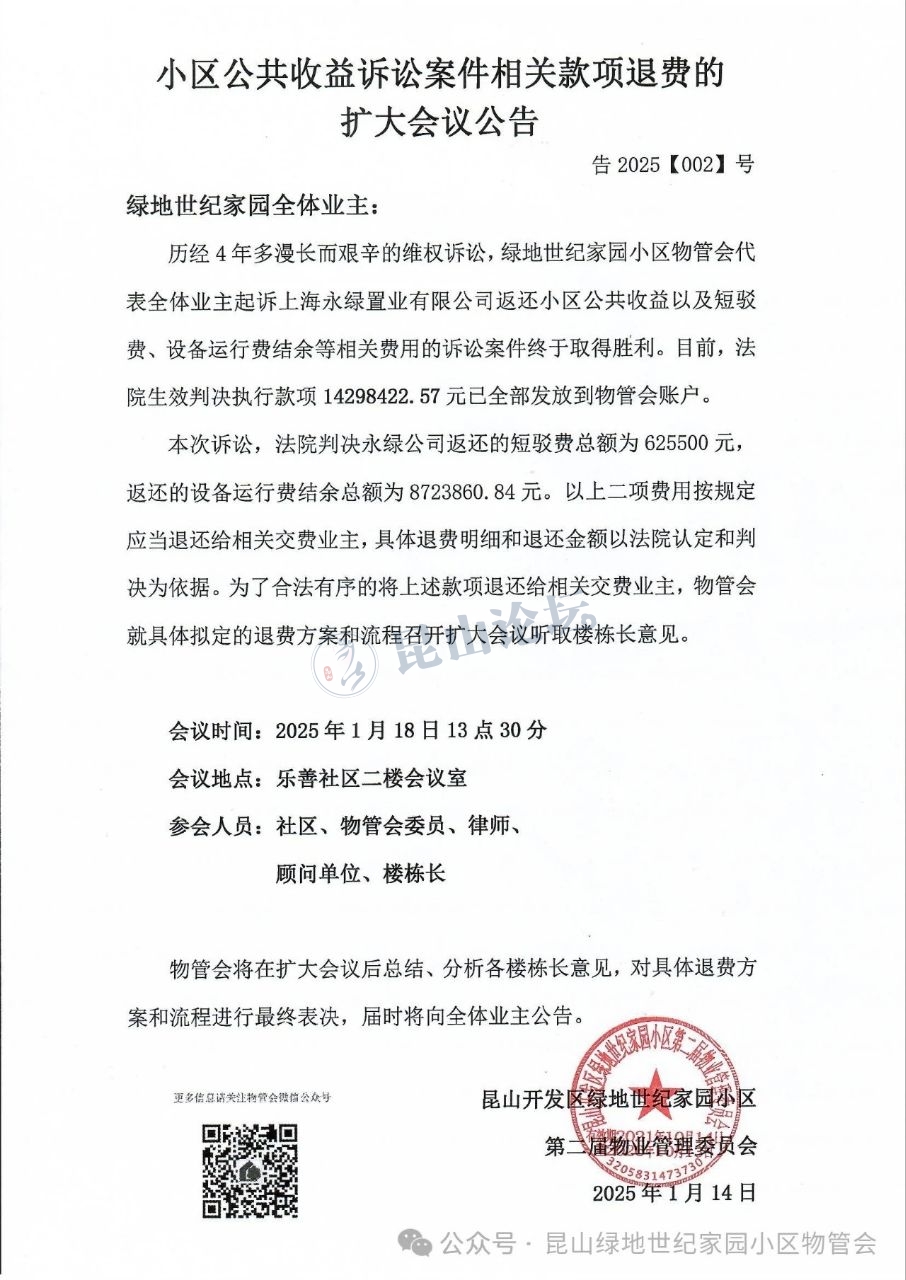 最终,经过昆山法院调解后,双方初步达成一致意见,拟定了协议初稿,由某物业公司向业委会退还公共收益款项总计270万余元。