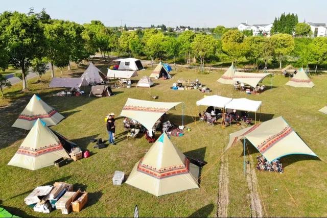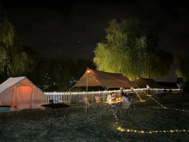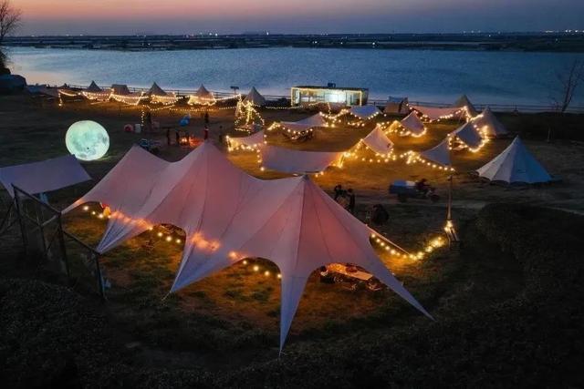 ⛺ 位于风景秀丽的淀山湖环湖大道一侧,占地3000平方米,可同时容纳200人露营。基地内含“郊野会客厅”“追日天幕”“露营夜宿”、咖啡水吧、音乐舞台、烧烤区等功能区域,并配备停车场、淋浴房等设施。