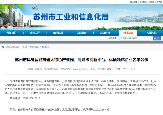 近日,苏州市工信局公示了苏州市具身智能机器人特色产业园、苏州市具身智能机器人高能级创新平台、苏州市具身智能机器人优质领航企业名单。锦溪企业江苏立讯机器人有限公司入围苏州市具身智能机器人优质领航企业。