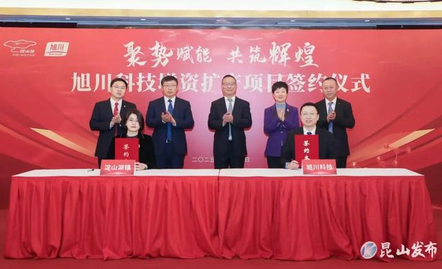 3月20日,旭川科技增资扩产项目签约落户昆山淀山湖镇。市委书记陈丽艳会见了旭川集团董事长江平一行,并共同见证签约。
