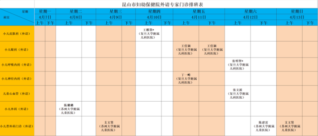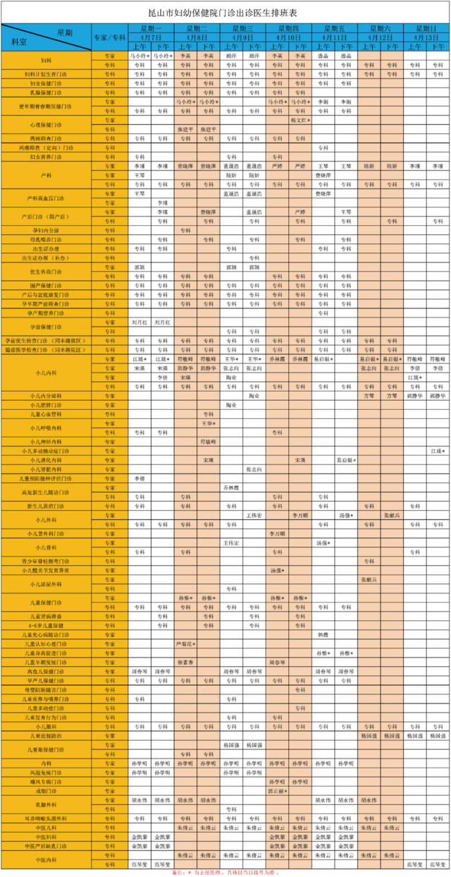 4.7~4.13昆山市妇幼保健院最新排班表,一键收藏!