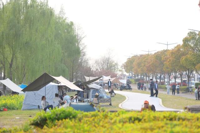 绿树成荫好,春色几度游。露营地已成为居民游客“微度假”的热门地,他们或搭起帐篷、或支起天幕,在大片绿草地上吹着和煦的春风、欣赏迷人的湖景,好不惬意。