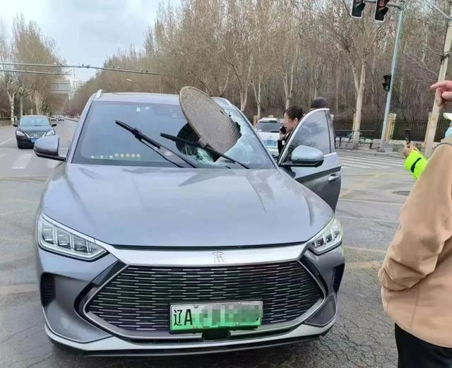 被“天降”井盖砸中前挡风玻璃