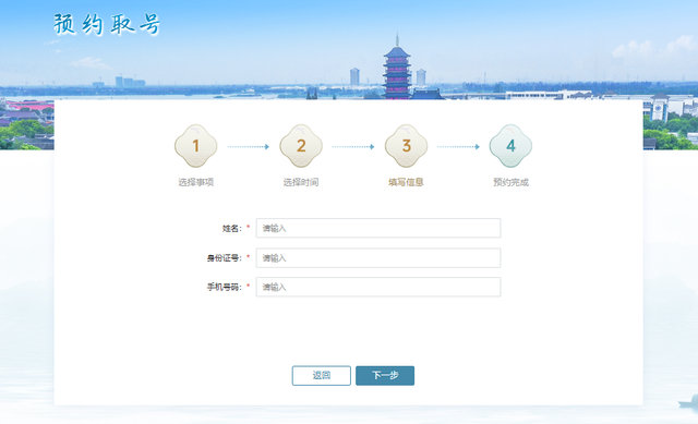 (3)填写信息:选定时间段后,完善个人资料并提交;