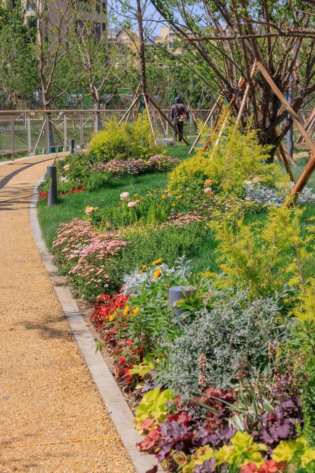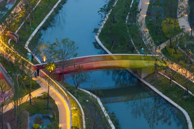 在系统功能方面,公园创新性地整合了调蓄池、雨水花园、下凹式绿地和透水铺装等海绵城市设施,实现雨水的自然渗透、净化和循环利用。