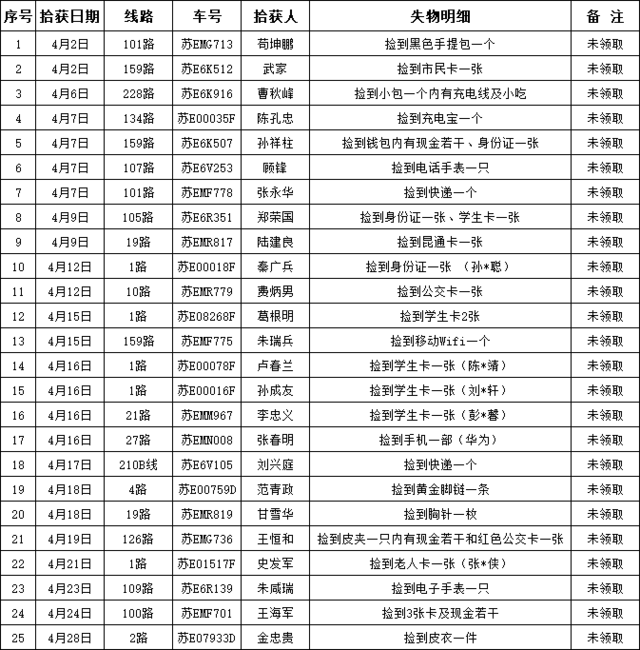 【昆山公交正能量】4月职工中涌现好人好事170起 归还失物139件