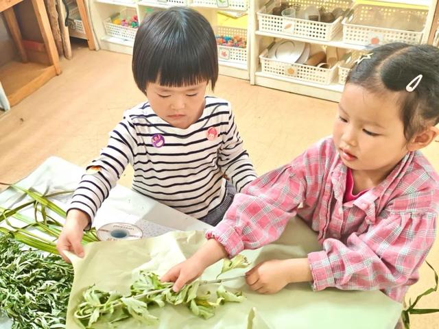 阳澄湖科技园幼儿园中班幼儿和奶奶们一起巧手包粽子。