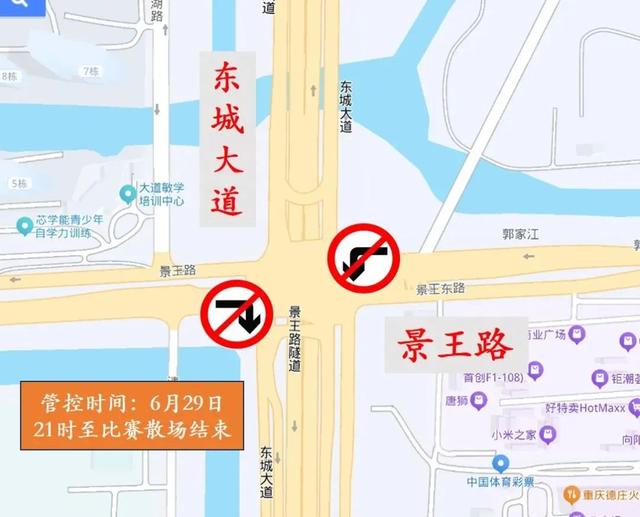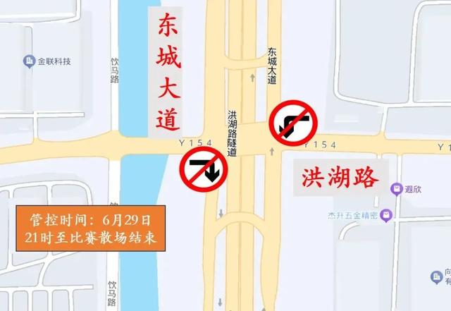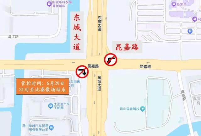 管控路口:东城大道洪湖路、东城大道昆嘉路、东城大道景王路路口临时实施交通管控,机动车请勿沿辅道向南行驶。