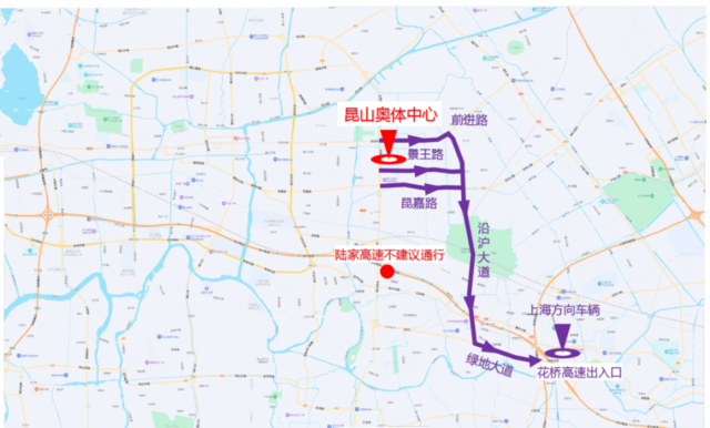 散场时,因东城大道沪宁高速陆家收费站车多缓行,需要通过高速离昆的自驾车辆,建议选择沪宁高速花桥收费站、昆山收费站和常嘉高速巴城收费站等绕行。