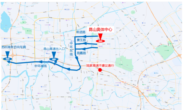 为缓解昆山奥体中心周边道路通行压力,确保观众按时观赛,建议观众采取以下方式前往昆山奥体中心观赛。